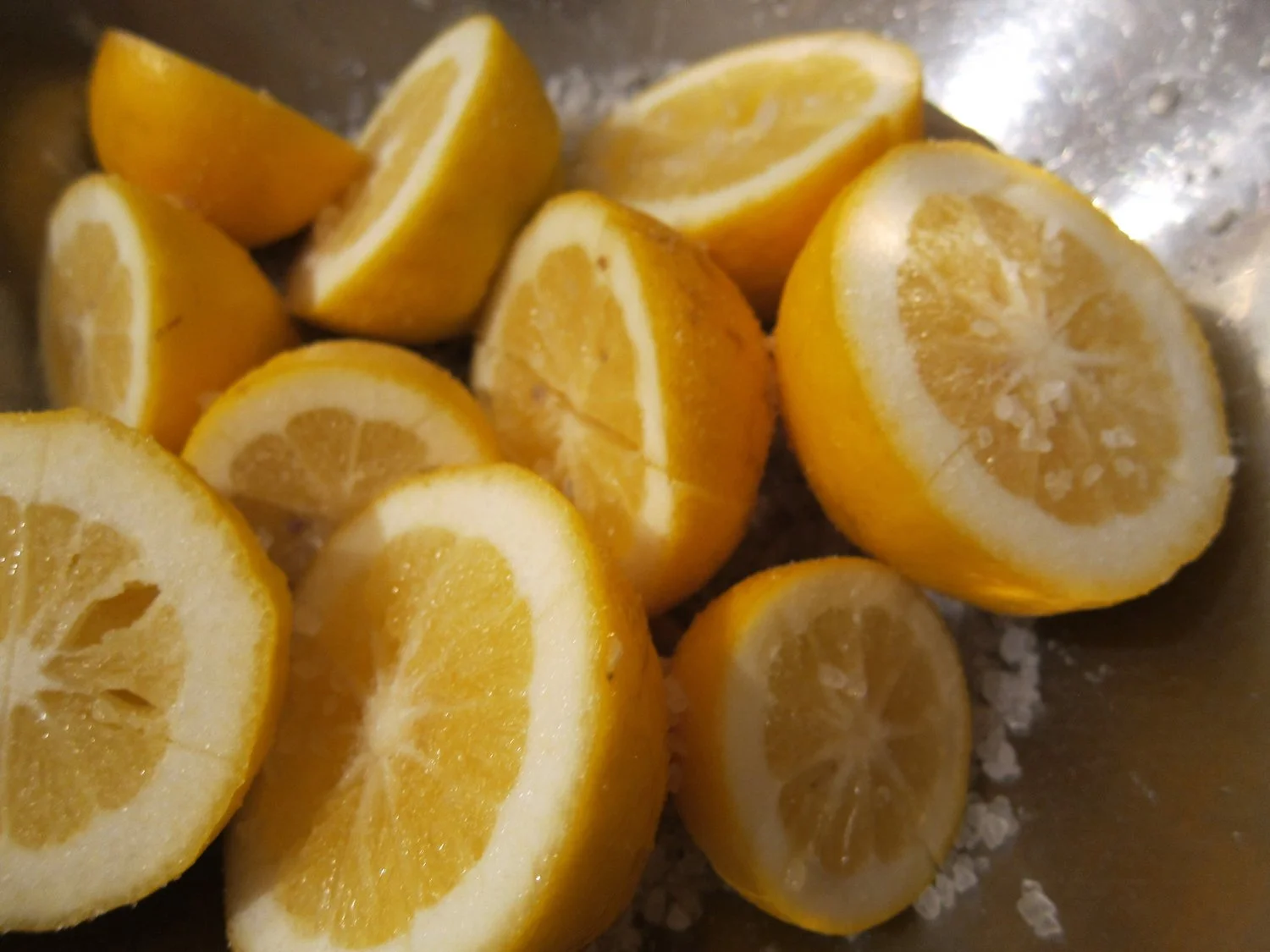 Rub lemon halves all over with salt, making sure to get in between the crevices, and press down into jars as you go. Press lemon halves on top of each other into jars tightly, squeezing out as much water as possible.